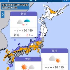 今日(19日)は日本海側の各地や北日本の
