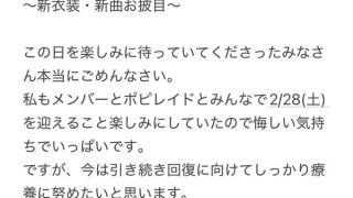 [@official_popipa:【2/28 上見天乃ライブ欠席とそれに伴う返金対応につきまして】